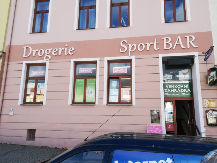 Výdejní místo se nachází v drogerii v budově bývalé pošty.