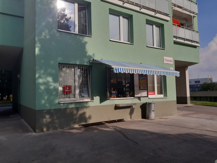 Prodejna z okénka se nachází v suterénu panelového domu.