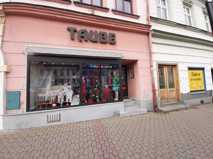 Výdejní místo se nachází v prodejně dětské módy. Prodejna sídlí v budově Taube.