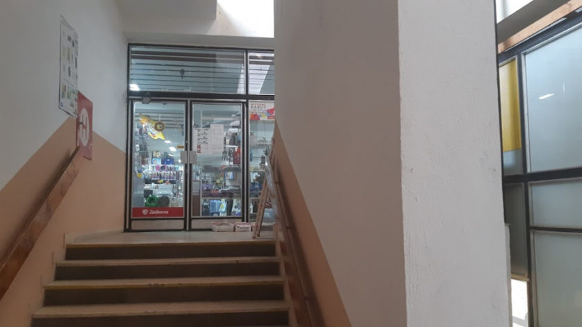 V prodejně domácích potřeb na náměstí. V prvním patře nad prodejnou COOP.
