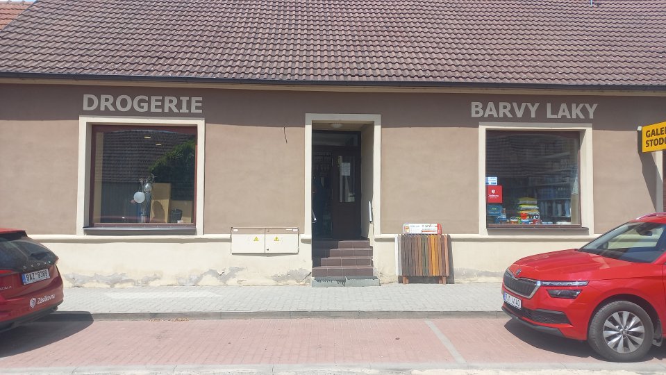 V drogerii u obecního úřadu.