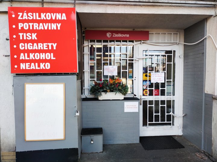 Výdejní místo se nachází v potravinách v přízemí věžáku.