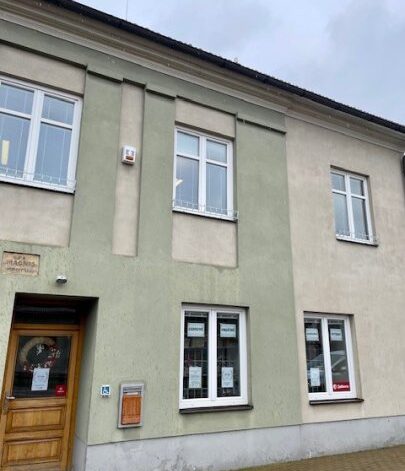 Prodejna se nachází v budově obecního úřadu, vstup je ze strany silnice.