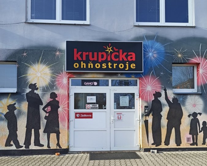 Výdejní místo je umístěné v obchodě Ohňostroje Krupička v ulici Ke křížkám 166.