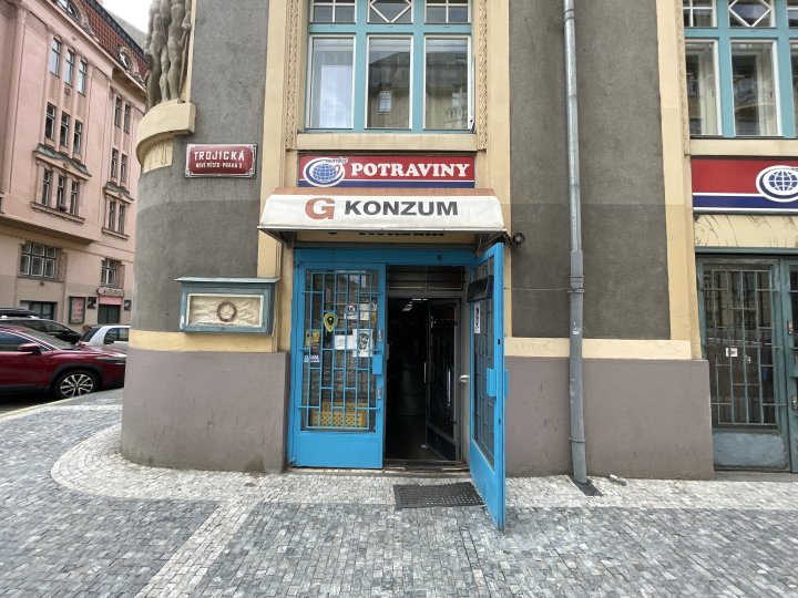 Výdejní místo se nachází v prodejně potraviny v ulici Trojická, Praha 2