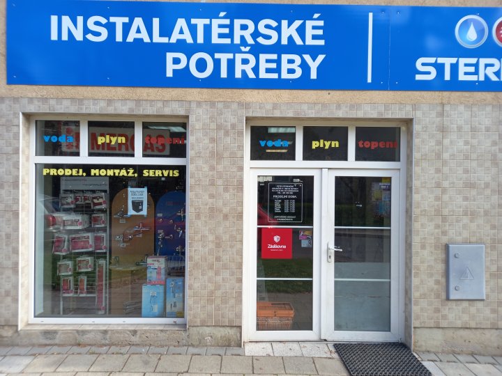 Výdejní místo se nachází po pravé straně směrem k městu v instalatérských potřebách.