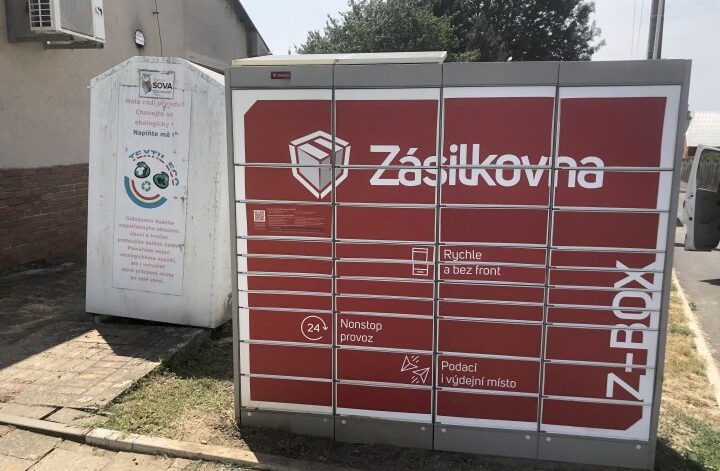 Z-BOX se nachází u potravin Hruška vedle poštovní schránky.