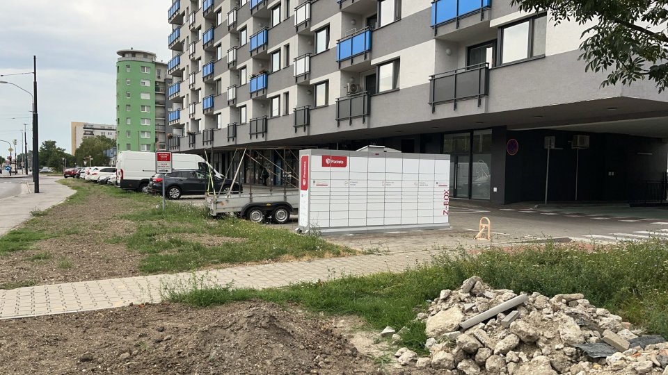 Z-BOX sa nachádza na adrese Bratislava, Uzbecká 10, na parkovisku pred panelákom.