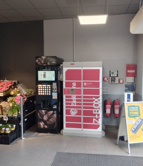 Z-BOX se nachází v prodejně BILLA, hned za vchodem.