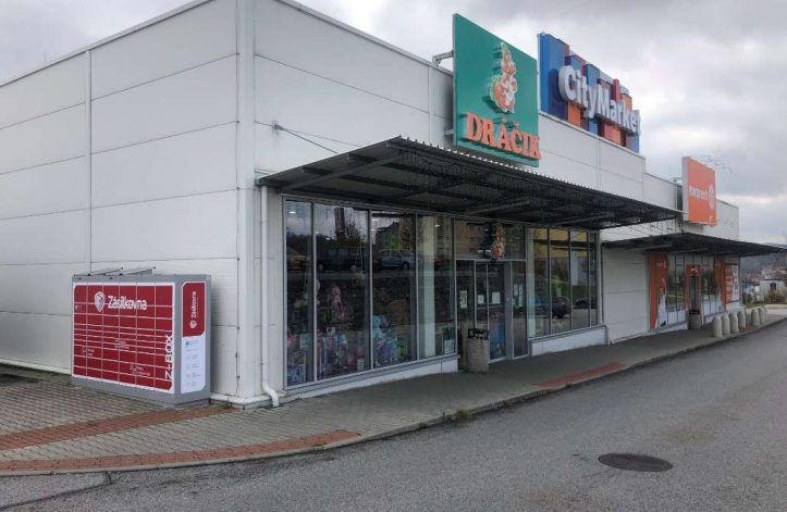 Z-BOX se nachází v City Marketu mezi budovami na boční stěně prodejny Dráčik.