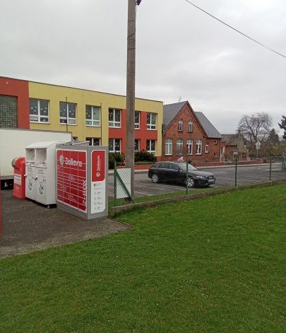 Z-BOX se nachází u parkoviště základní školy.