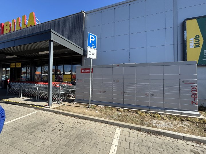 Z-BOX je umístěn v zeleni naproti supermarketu Billa.