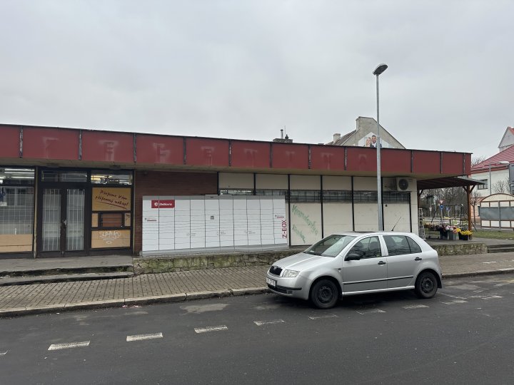 Z-BOX se nachází vedle prodejny, podél zdi.