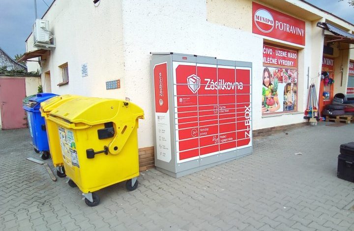 Z-BOX se nachází před prodejnou potravin.
