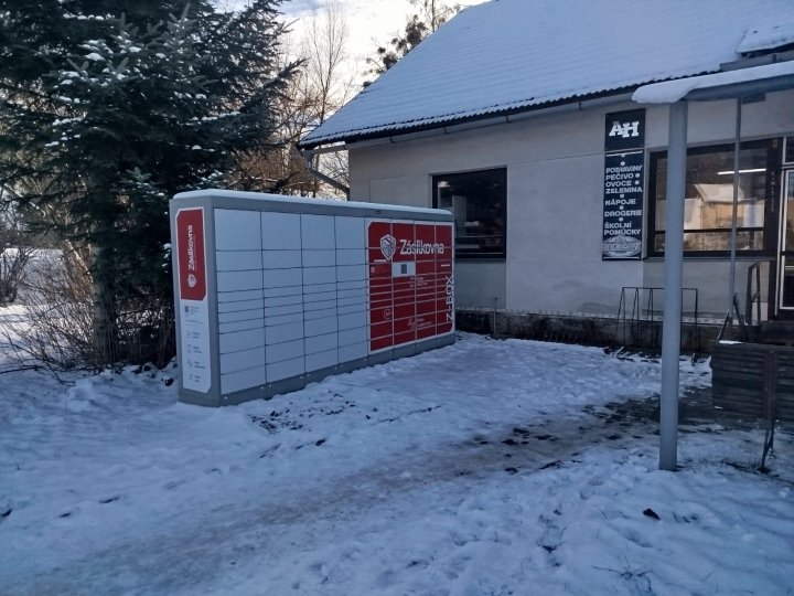 Z-BOX se nachází před prodejnou potravin.