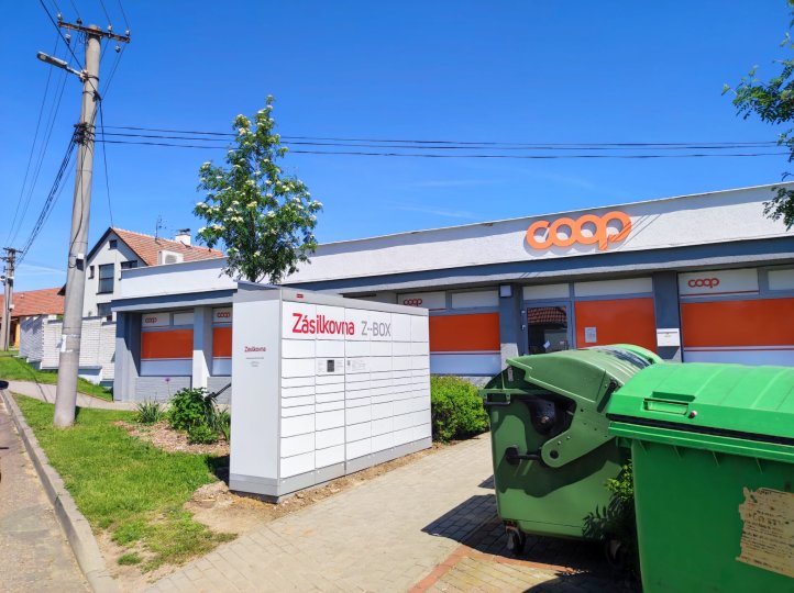 Z-BOX se nachází před prodejnou potravin.