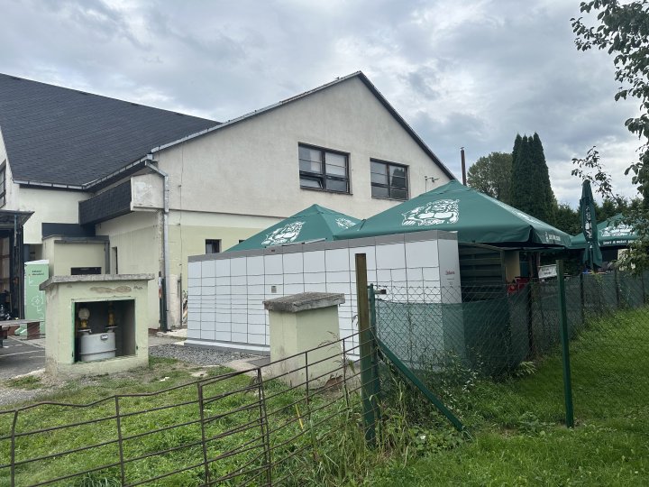 Z-BOX se nachází o před obchodem potravin Hruška, na adrese Za Potokem 279.