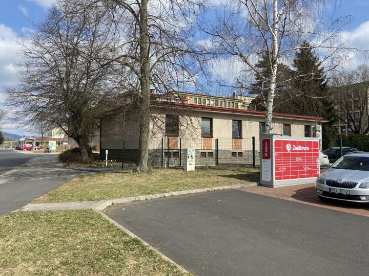Z-BOX se nachází na parkovišti u nemocnice.
