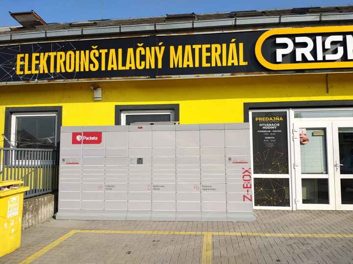 Z-BOX sa nachádza na adrese Pezinok, Šenkvická cesta 2166/1, pred vstupom do predajne s elektroinštalačným materiálom.