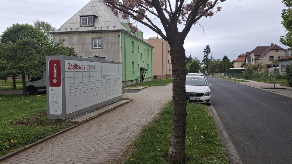 Z-BOX se nachází v ulici Wolkerova. Je umístěn na trávníku kousek od cesty.