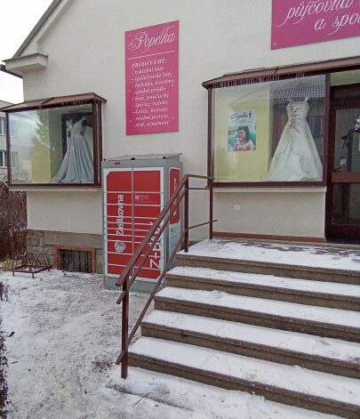 Z-BOX se nachází před Svatebním salonem Popelka.