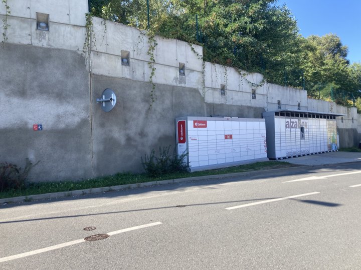 Z-BOX se nachází u zdi naproti KFC a Benzině.