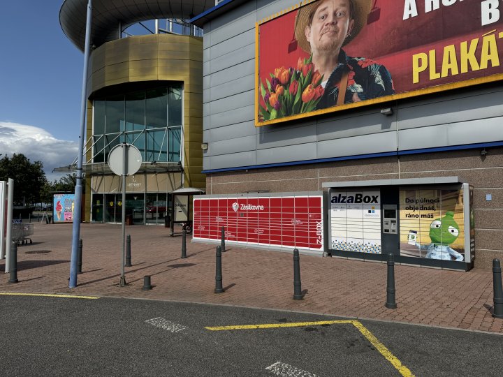 Z-BOX se nachází u vchodu Tesca. (Velké parkoviště)