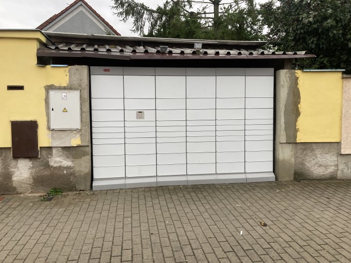Box je umístěn ve zdi u občerstvení u Báti na Libušské ul.