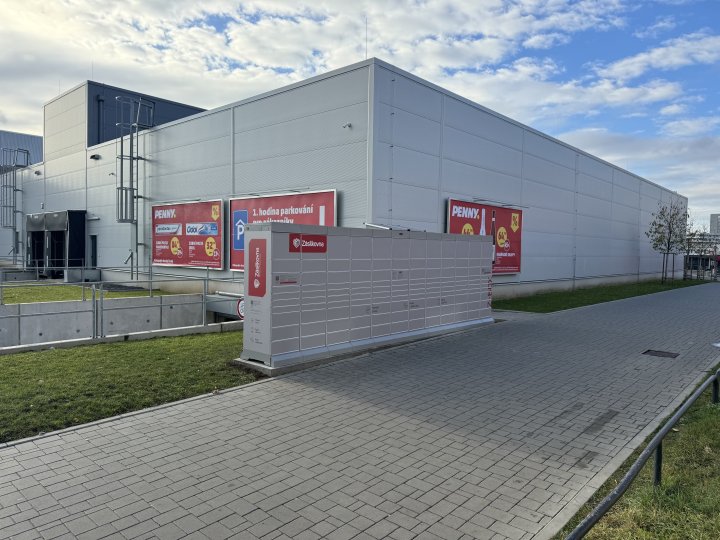 Z-BOX se nachází na trávníku u prodejny Penny (naproti bankomatu ČSOB)