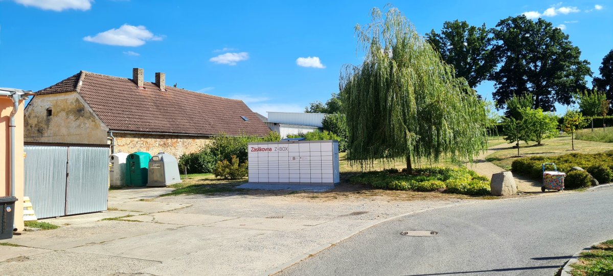 Z-BOX se nachází za prodejnou potravin COOP – TUTY a obecním úřadem.