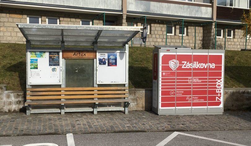 Z-BOX je umístěn na autobusové zastávce Artex.