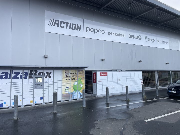 Z-BOX je umístěn podél zdi vedle Alza Boxu.
