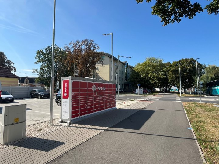 Z-BOX sa nachádza na adrese Trebišov, Komenského 4, na chodníku, pred predajňou potravín.