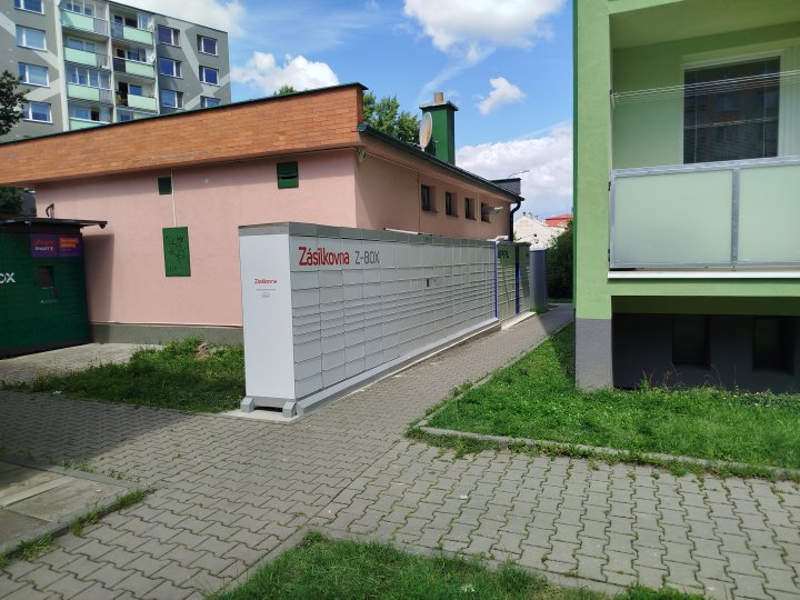Z-Box se nachází za rohem budovy, v postranní uličce. V blízkosti GLS a Alza boxů.