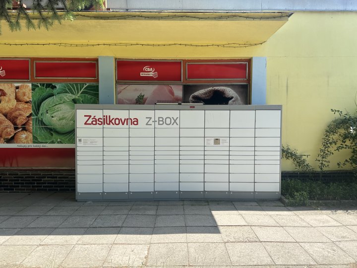 Z-BOX se nachází před prodejnou potravin.