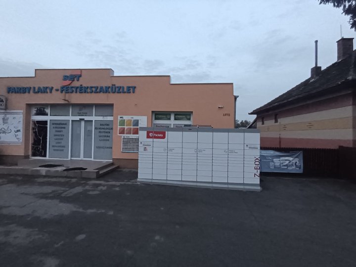 Z-BOX sa nachádza na adrese Veľké Úľany, Krajná 1372, pred predajňou farby-laky.